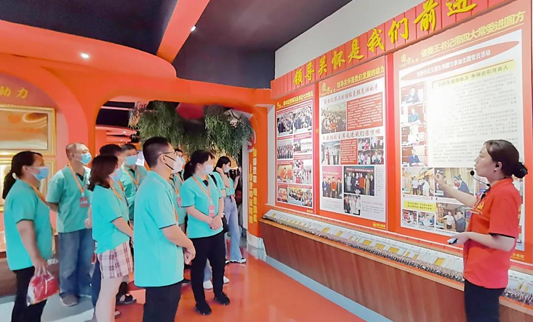 為深入學(xué)習(xí)貫徹習(xí)近平總書記給鄭州圓方集團(tuán)全體職工的重要回信精神,了解和借鑒優(yōu)秀非公有制企業(yè)黨建工作經(jīng)驗,8月3日下午,公司執(zhí)行董事徐希萍、黨支部書記董高峰帶領(lǐng)近20名黨員及團(tuán)員代表走進(jìn)鄭州圓方集團(tuán)參觀學(xué)習(xí)。