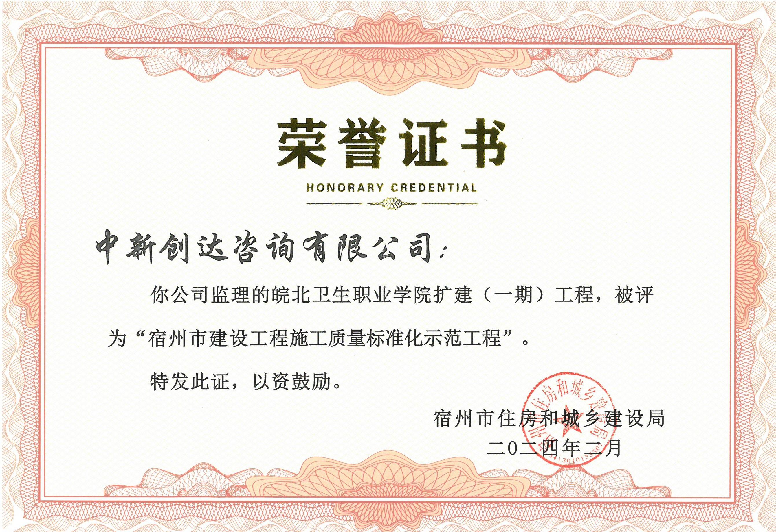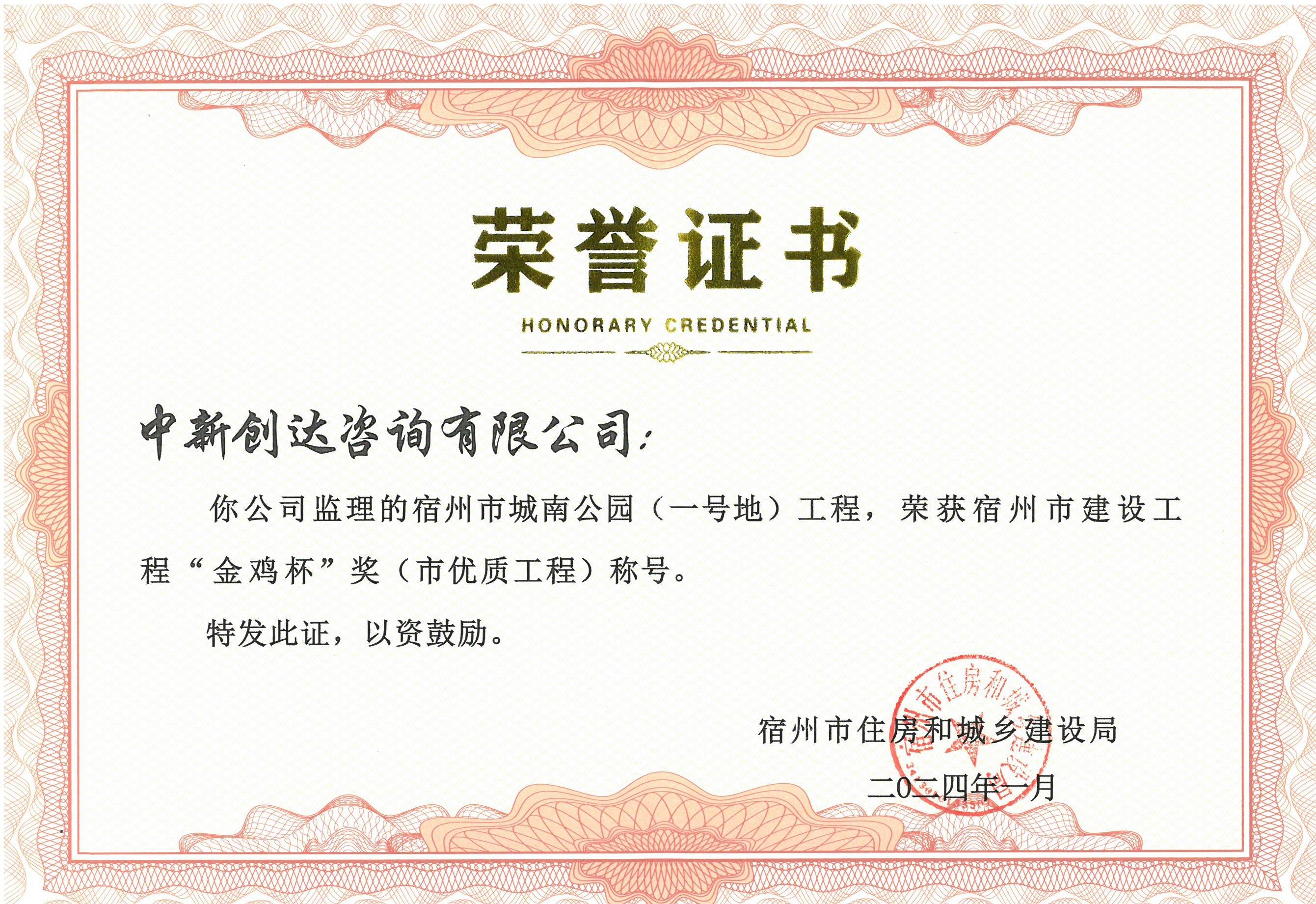 宿州市建設工程“金雞杯”獎(市優(yōu)質工程)稱號