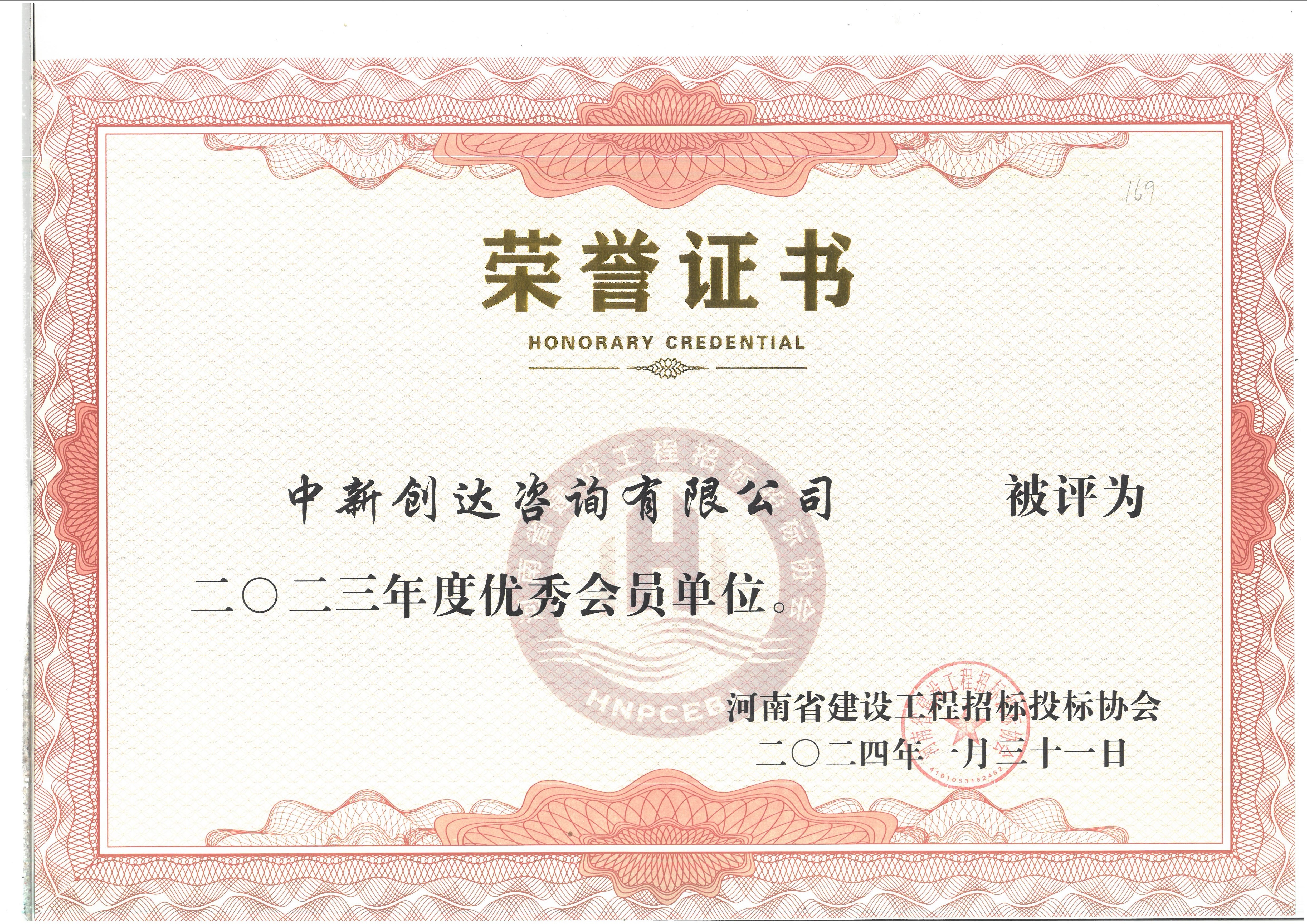 河南省建設工程招標投標協(xié)會-2023年度優(yōu)秀會員單位
