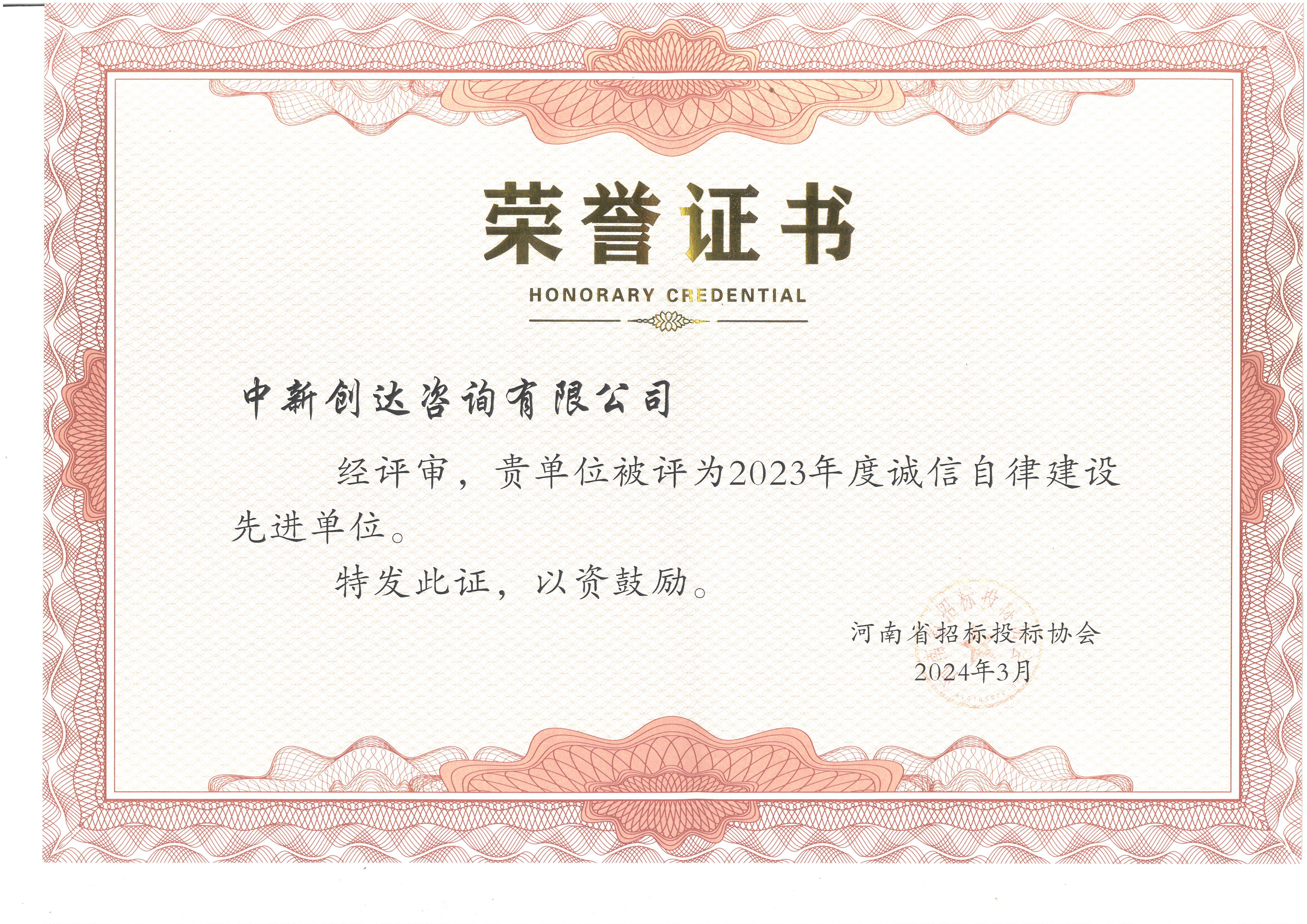 河南省招標投標協(xié)會-2023年度誠信自律建設先進單位