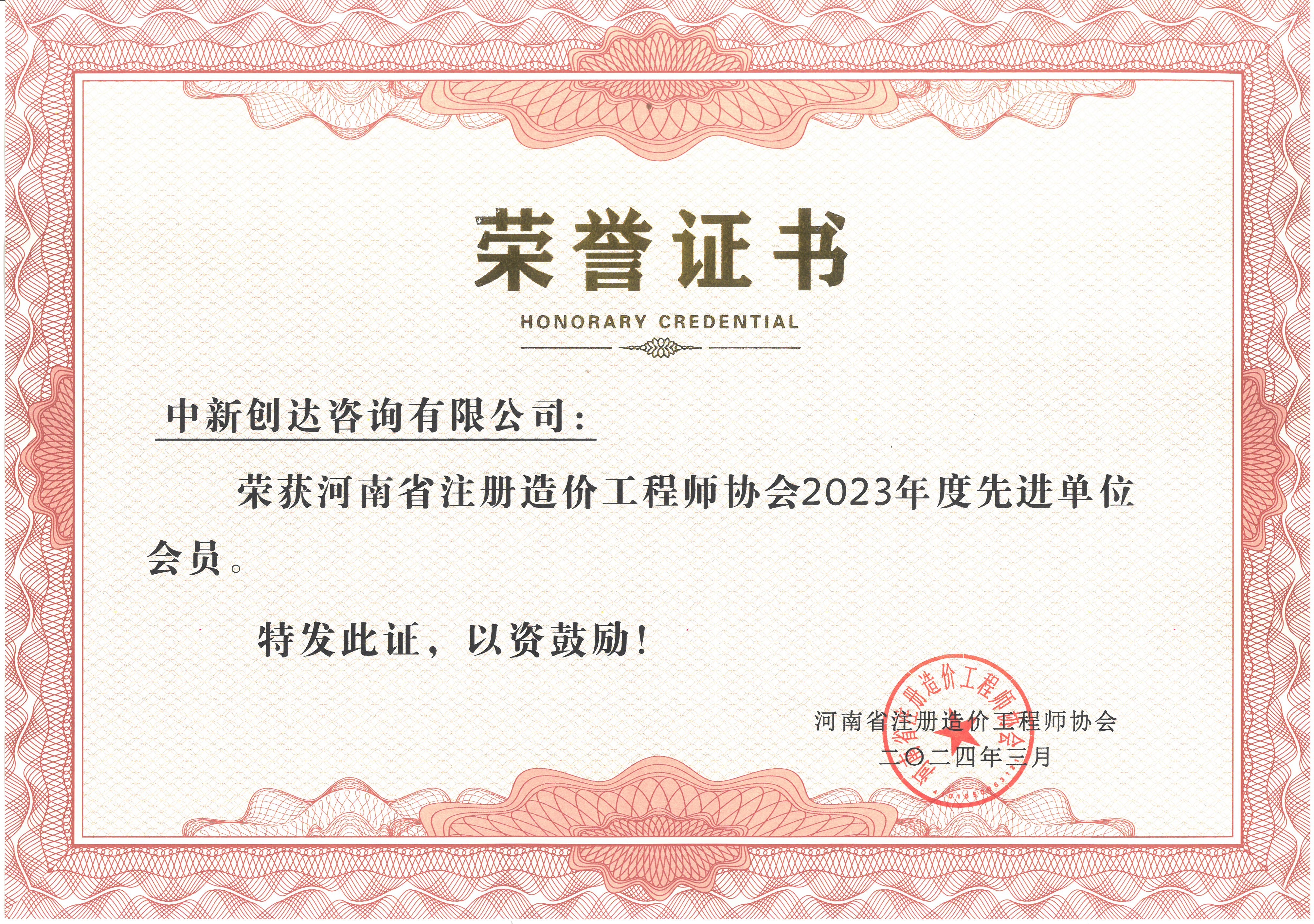 河南省注冊造價工程師協(xié)會-2023年度先進單位會員