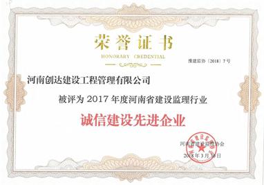 2017年度河南省建設(shè)監(jiān)理誠信建設(shè)先進(jìn)單位